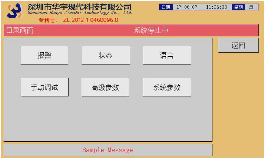 目錄畫面:跳轉(zhuǎn)各個(gè)畫面,帶禁止標(biāo)志的按鈕需要權(quán)限密碼才能進(jìn)入。
