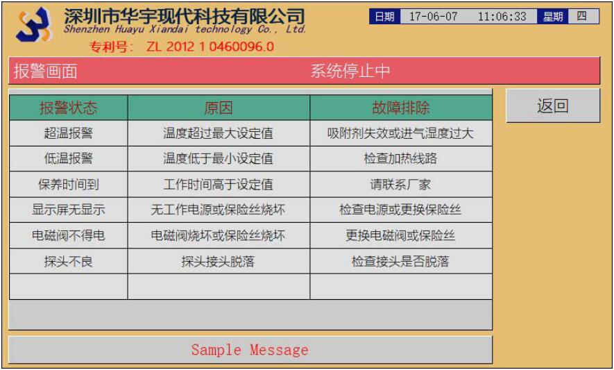 報(bào)警畫面:羅列出常見報(bào)警的原因以及處理方法。