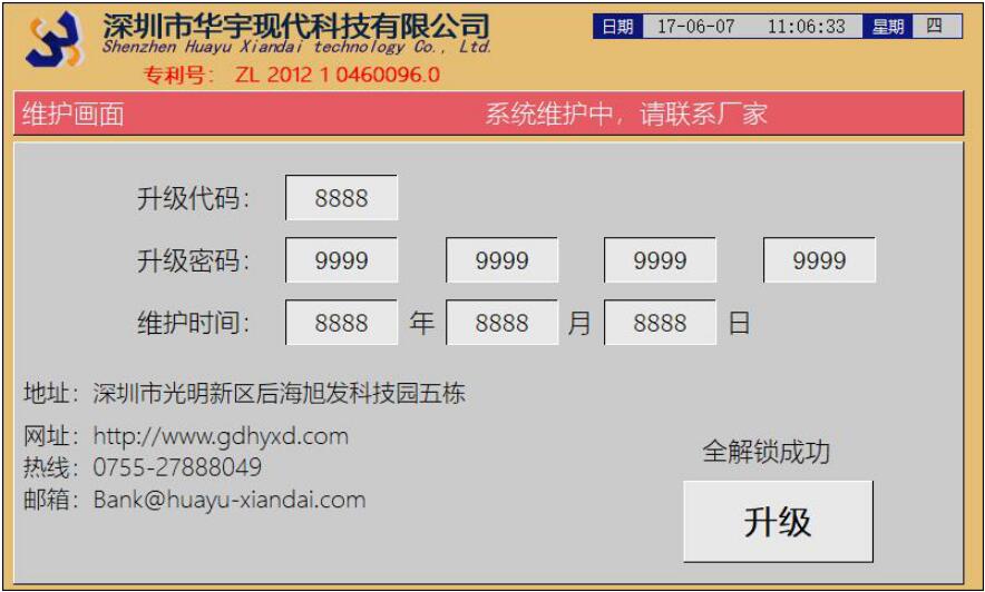 【升級】:客戶在輸入密碼后點(diǎn)擊此按鈕,系統(tǒng)將根據(jù)密碼輸入的值來判定密碼的正確性,并提示是否升級成功。解鎖成功后斷電再上電即可解除本次期限。